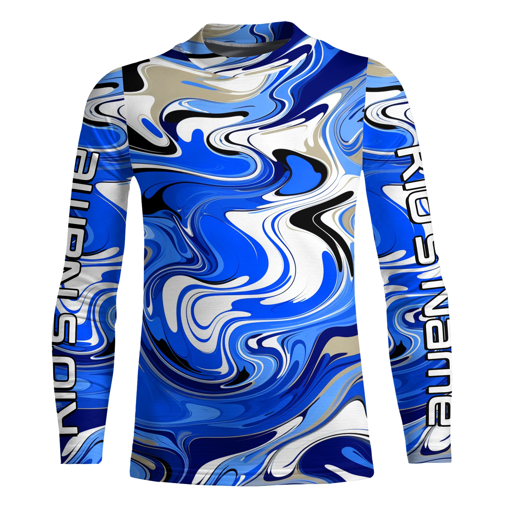 Blue Water Camo Custom Long Sleeve Performance Fishing Shirts, Sun Protection Fishing Jerseys IPHW5977