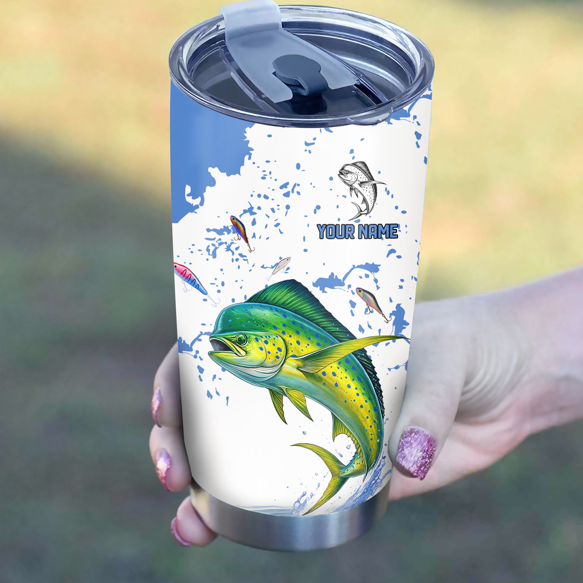 1PC Personalized Blue and white Mahi mahi Fishing Tumbler Cup Custom Name Mahi mahi Fishing gifts NQS11521
