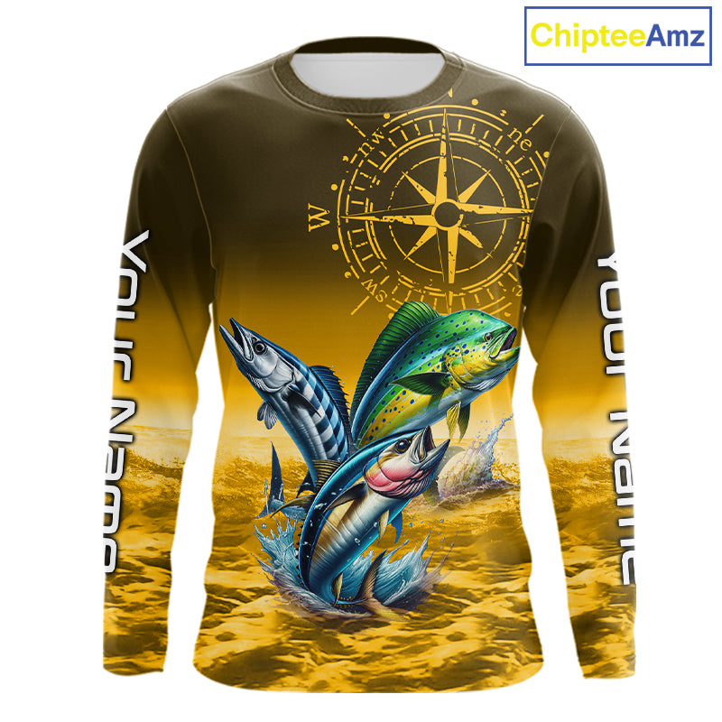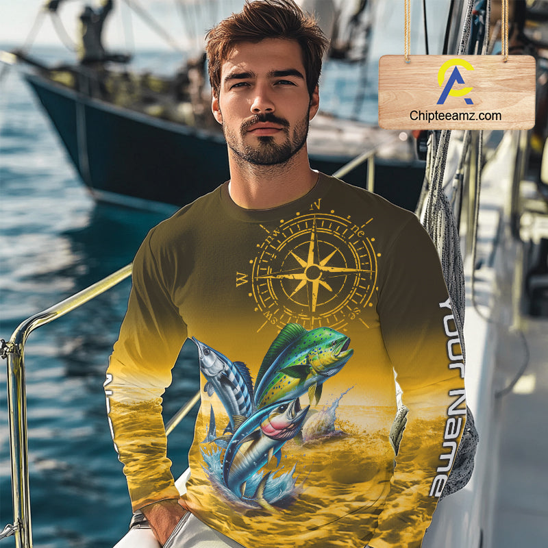 Custom Mahi Mahi, Wahoo, Tuna Yellow Performance Fishing Shirt, Compass Offshore Tournament Shirts NQS11438