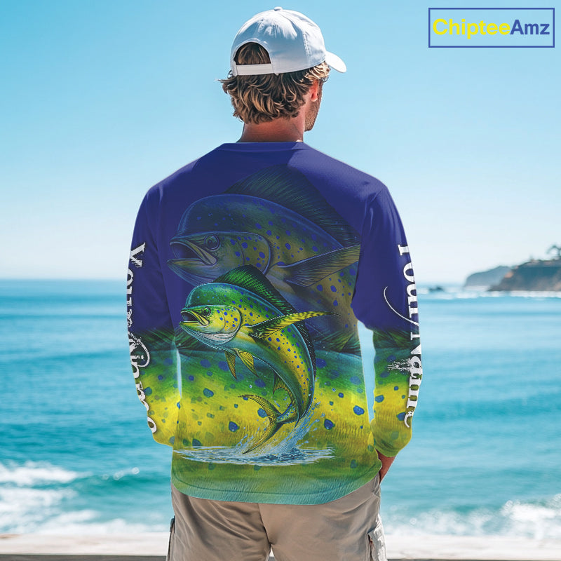 Personalized Mahi Mahi fishing scales blue sun protection fishing shirts, Dorado fishing jerseys NQS11435