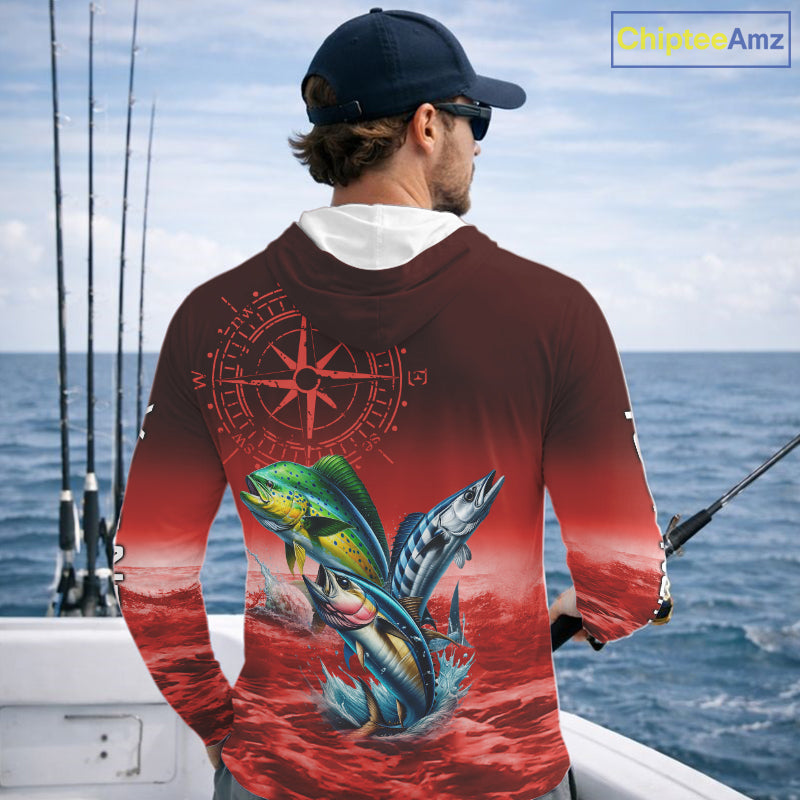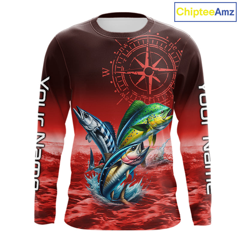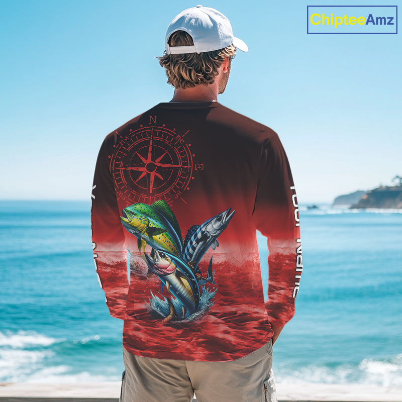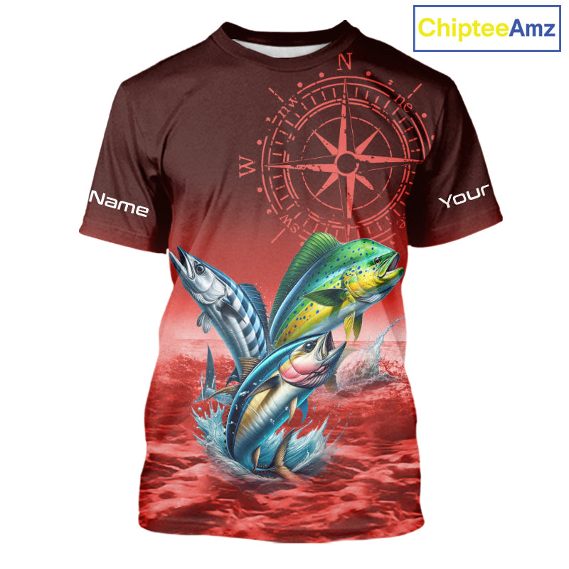 Personalized Mahi Mahi, Wahoo, Tuna Red Performance Fishing Shirt, compass offshore tournament Shirts NQS11437