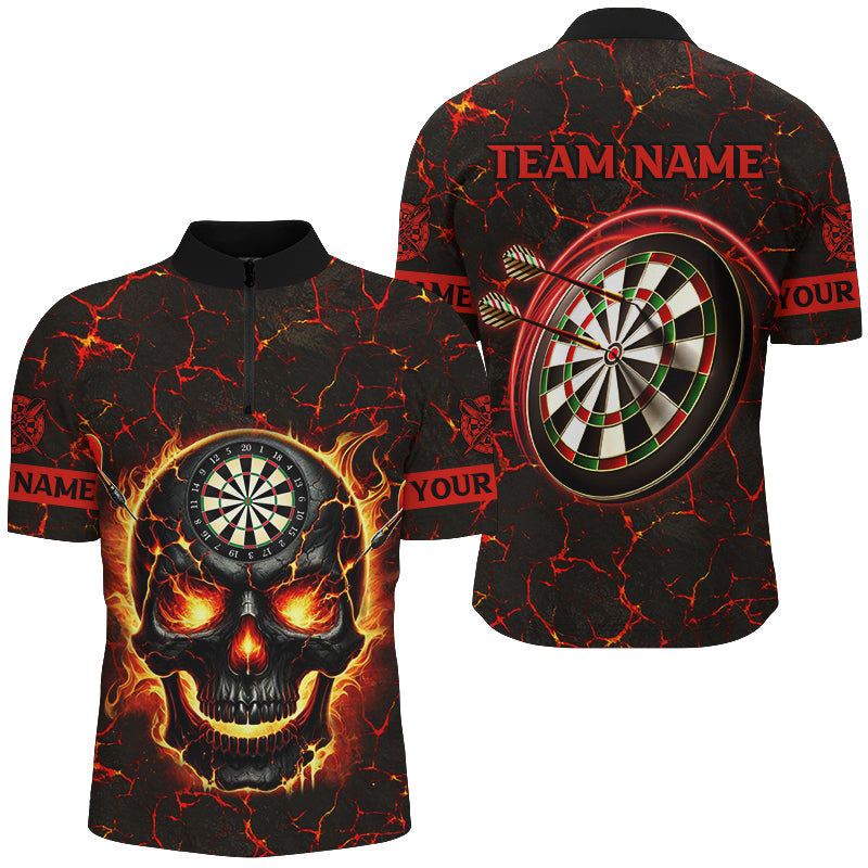 Personalized Fire Flame Skull Magma Pattern Men Darts Shirts, Dart League Shirts Team Jerseys |Red TDM2584