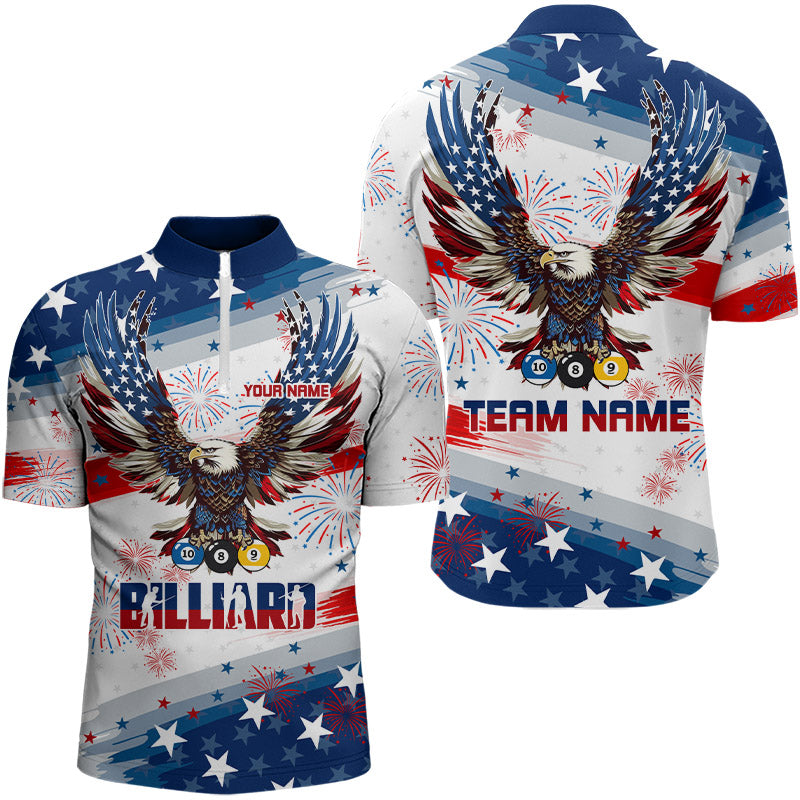 Personalized 8 Ball 9 Ball & 10 Ball American Flag Eagle Billiard Shirt, Pride Men Billiard Jerseys TDM3223
