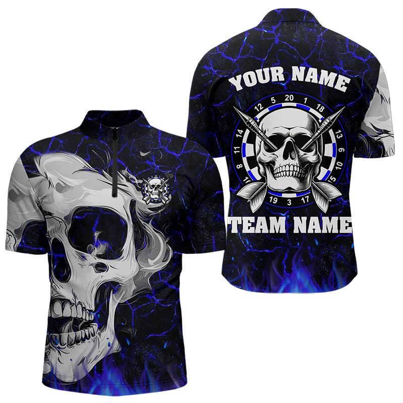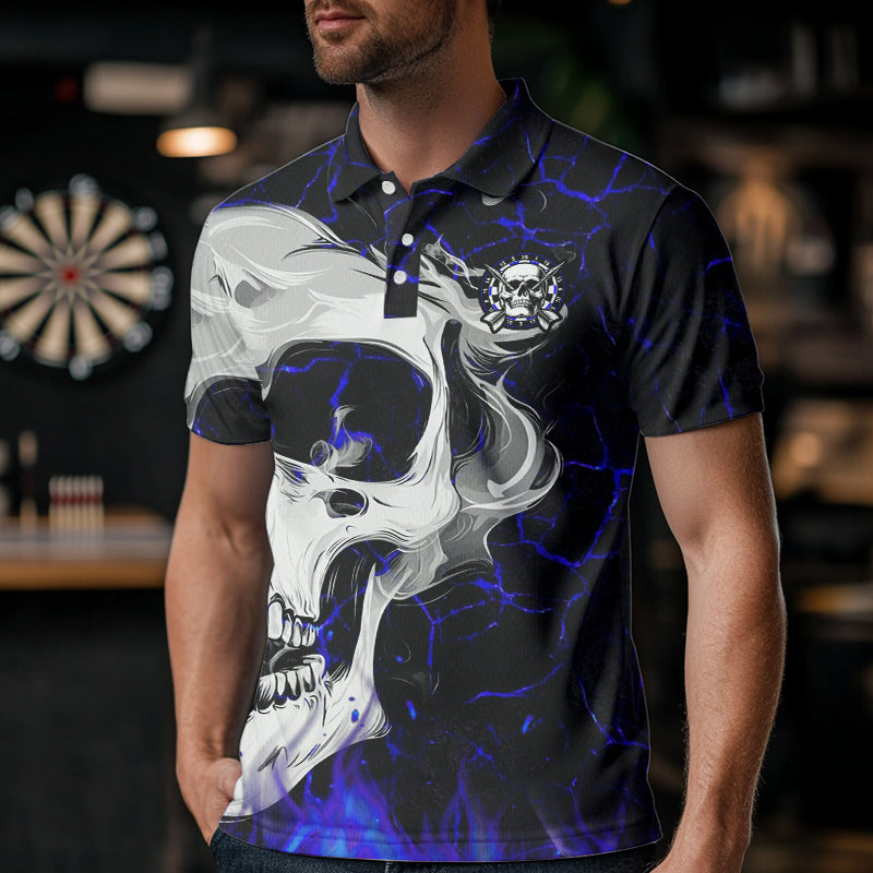 Personalized Blue Glowing Fire Crack Skull Dart Shirt Custom Dart Shirts For Men Dart Team Jersey TDM3492