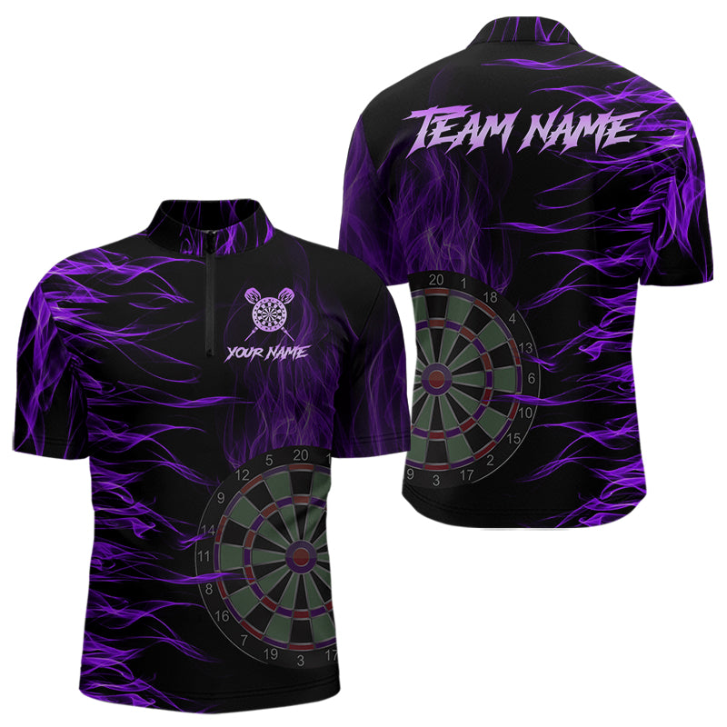 Personalized Purple Flaming 3D Fire Dart Shirts For Men Custom Team Dart Jerseys Polo & Quarter Zip TDM3686