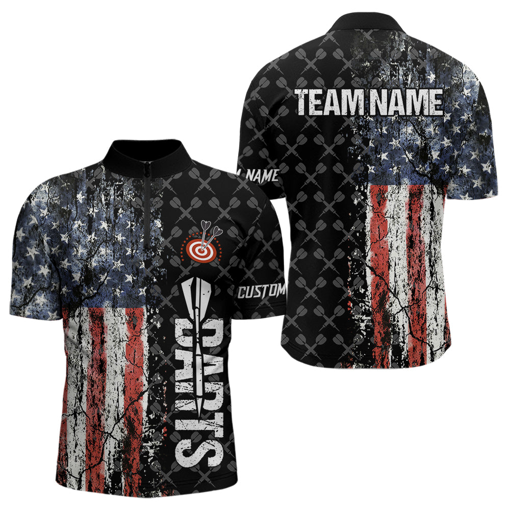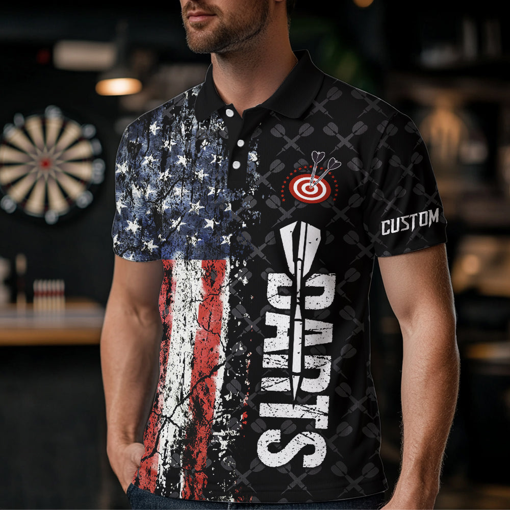 Grunge Vintage American Flag Custom Retro Dart Shirts For Men, Pride Team Patriotic Dart Jerseys TDM3693