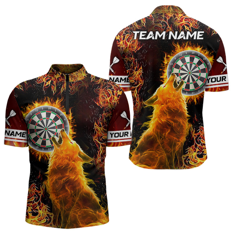 Orange Flame Dartboard Wolf Dart Shirts For Men Custom Dart Jersey Polo & 1/4 Zip, Dart Team Shirts TDM3783
