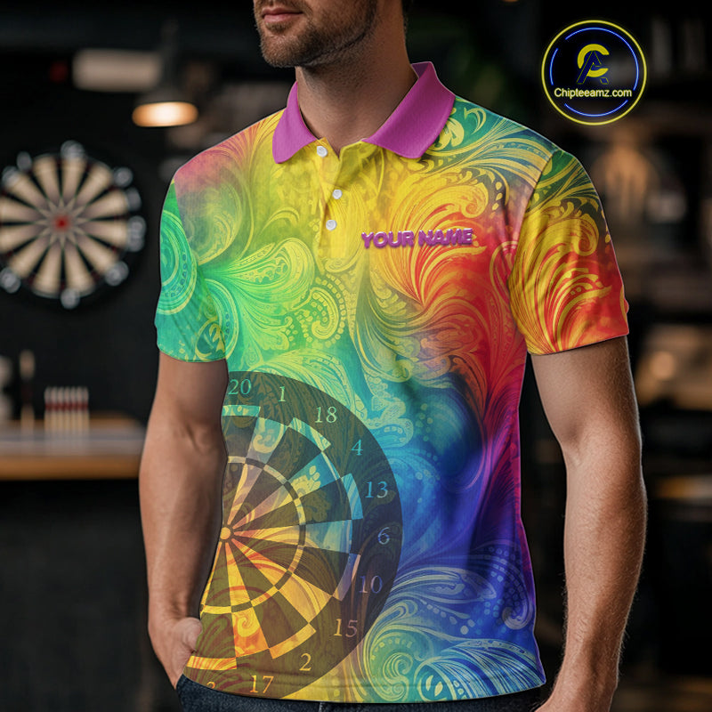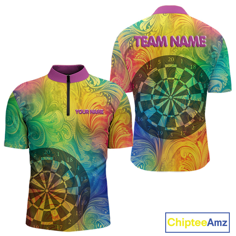Personalized Funny Colorful Dart Shirt Polo & 1/4 Zip For Men Custom Dart Jerseys Team Outfit TDM3844
