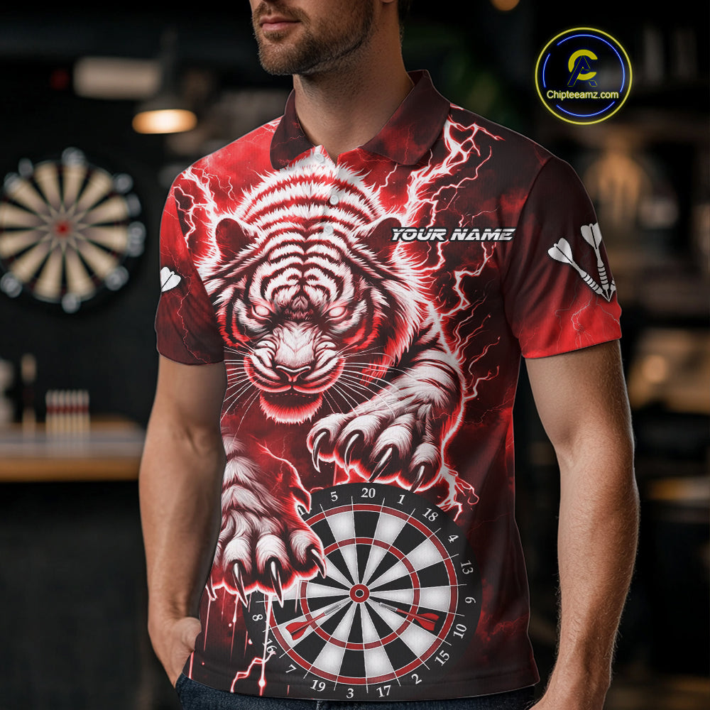 Personalized Thunder Lightning Tiger Dart Shirts For Men Custom 3D Dart League Team Jersey|Red TDM3861