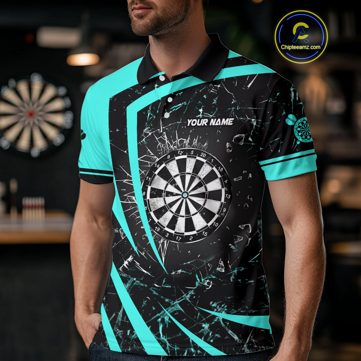 Personalized Turquoise Break Glass Dart Shirts For Men Custom Funny Dart Jerseys Polo & 1/4 Zip TDM3876