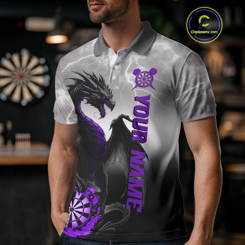 Purple Custom Lightning Dragon Dart Shirts For Men – Strike Darts Team Jerseys Polo & Quarter Zip TDM4058