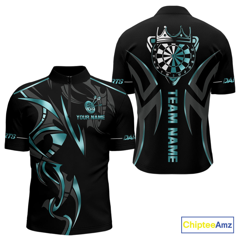Black And Turquoise Dartboard Crown Dart Shirts For Men Custom Dart Jersey Team Polo & Quarter Zip TDM4061