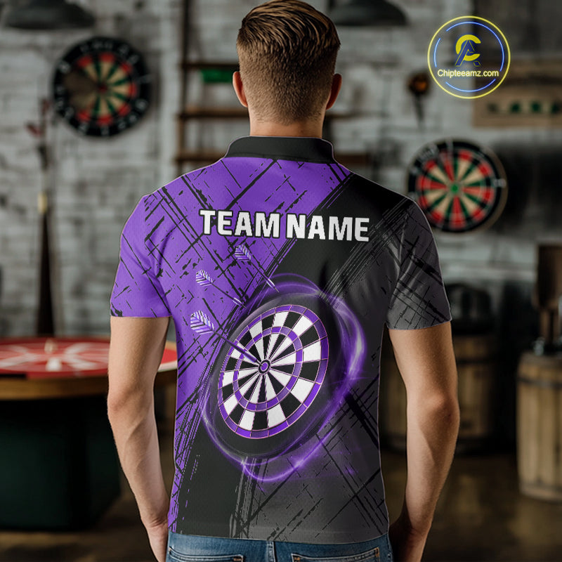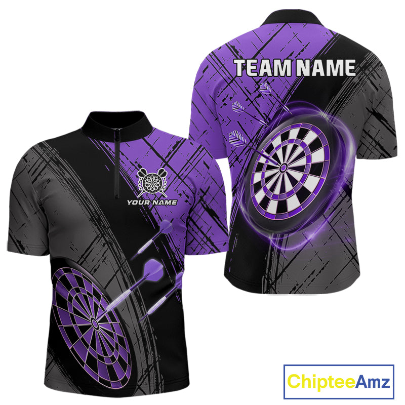 Grunge Purple Black Dartboard Light Men Dart Polo & 1/4 Zip Custom Dart Shirt For Team Dart Jersey TDM4126