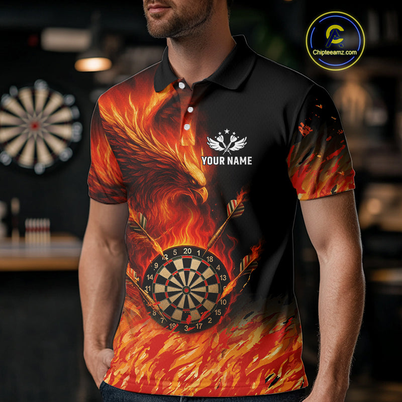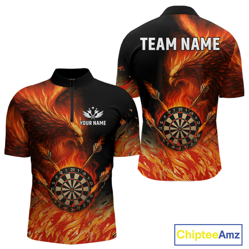 Orange Flaming Phoenix Darts Jerseys Custom Darts Shirt For Men, Darts Team Polo & Quarter Zip TDM4290