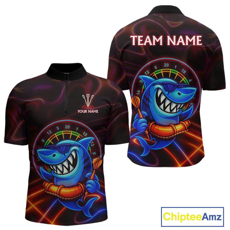Personalized Neon Funny Shark Darts Shirt For Men Custom Darts Team Jersey Outfit, Darts Gifts TDM4319