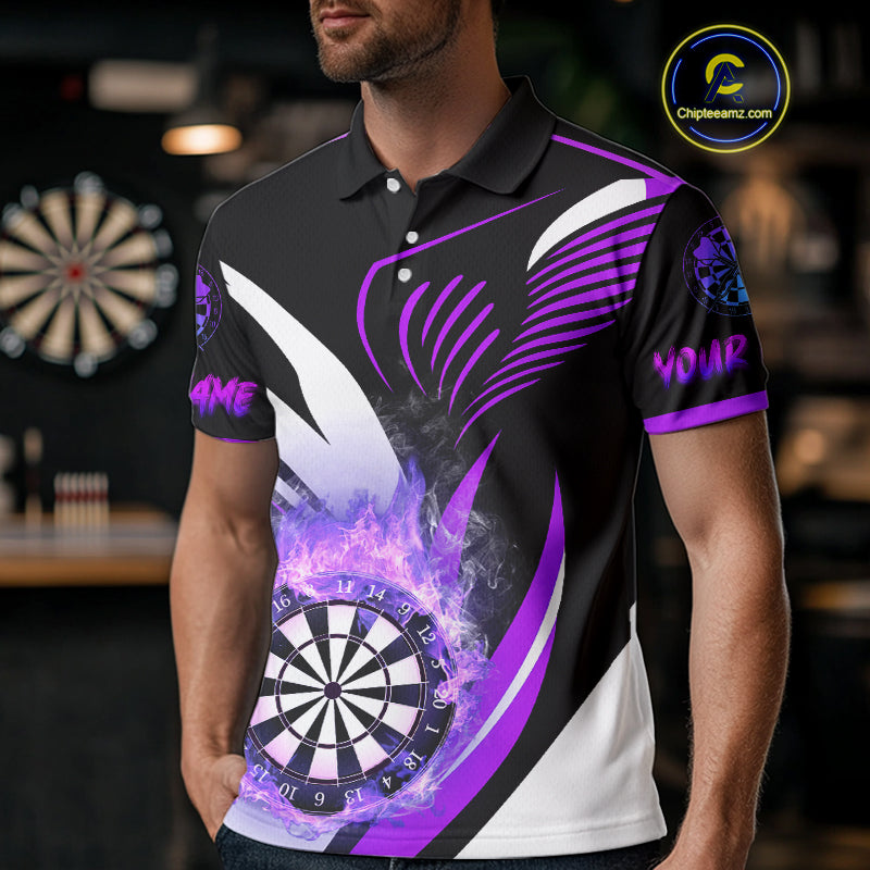 Personalized Purple Flame Dartboard Custom Darts Shirt For Men, Darts Jerseys Team Polo & 1/4 Zip TDM4404