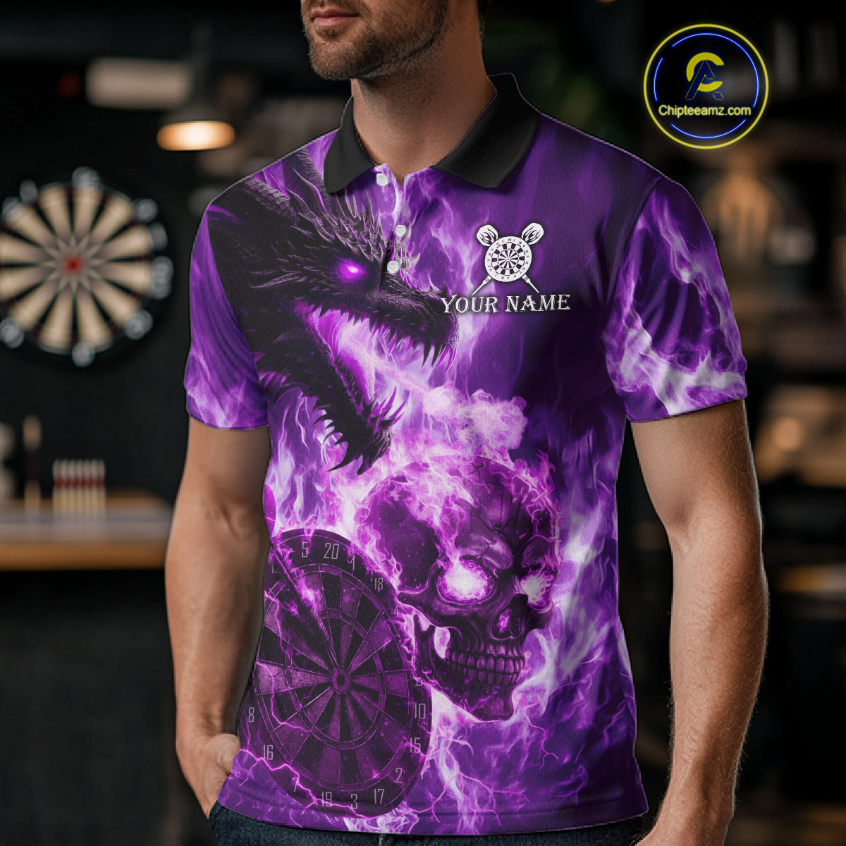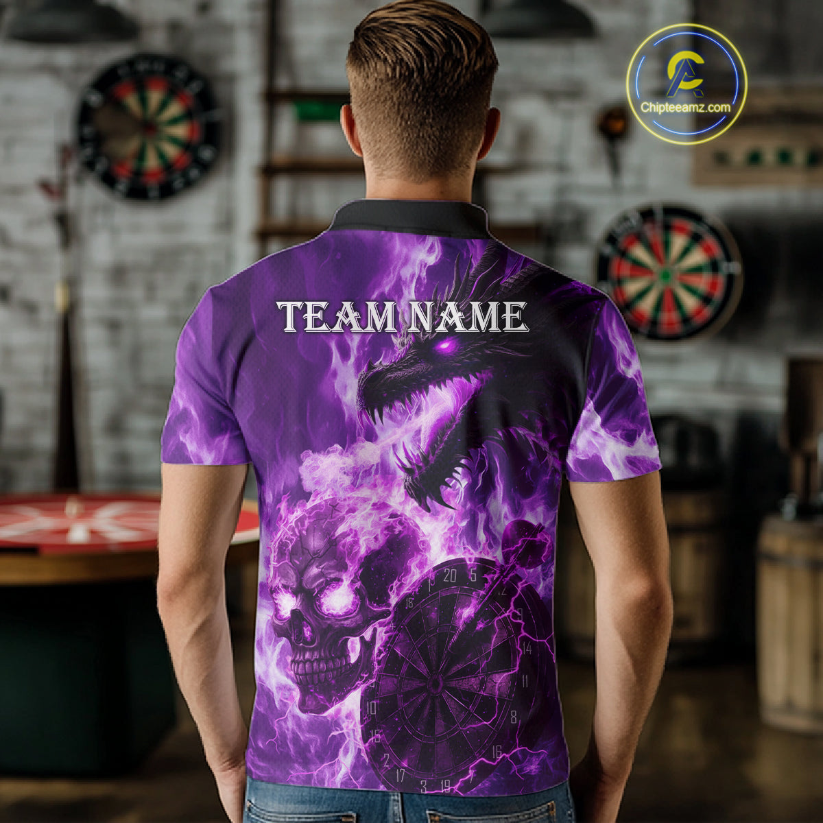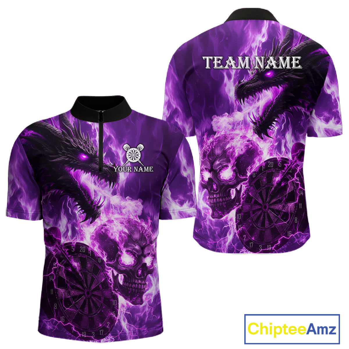Personalized Purple Flaming Dragon And Skull Darts Shirt For Men Custom 3D Fire Darts Team Jersey TDM4959