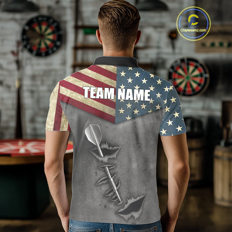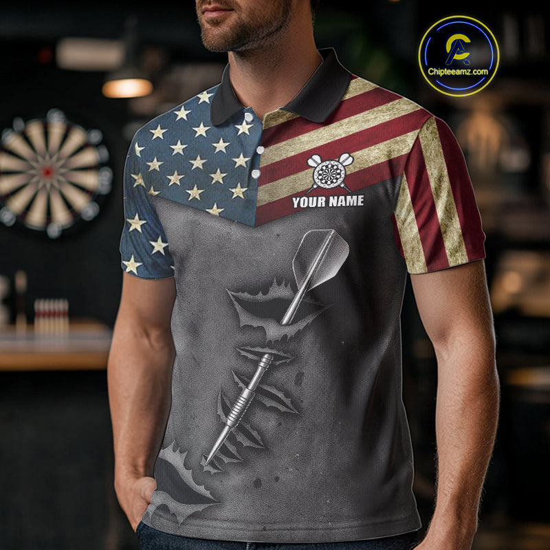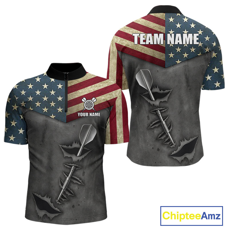Personalized American Flag Steel Tip Dart Polo & 1/4 Zip For Men Custom Patriotic Darts Jersey TDM5260