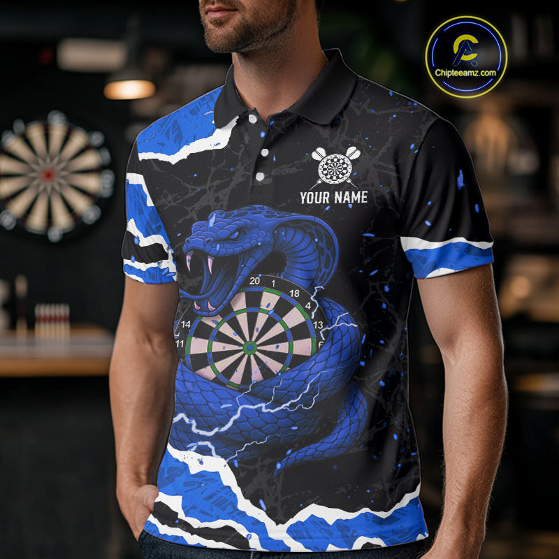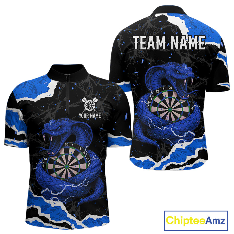 Black And Blue Dartboard Cobra Snakes Darts Polo & 1/4 Zip Custom Mens Darts Shirt, Darts Jersey TDM5338