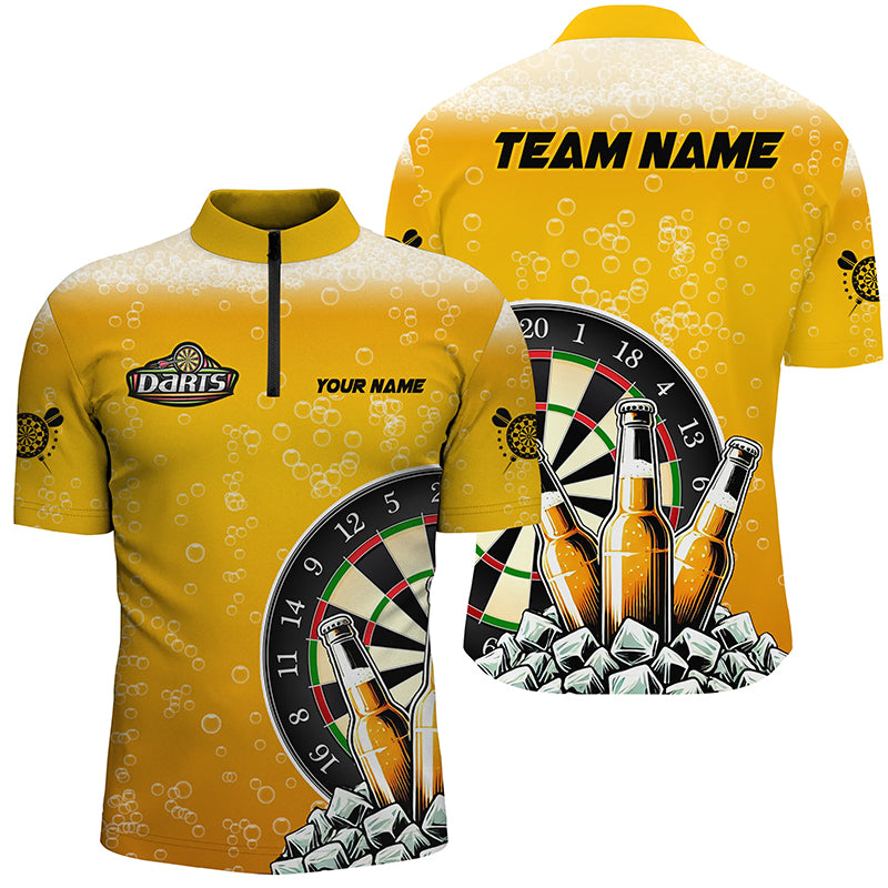 Personalized Yellow Darts And Beer Polo & Quarter-Zip Shirts For Men Custom Drinking Darts Shirts TDM1982