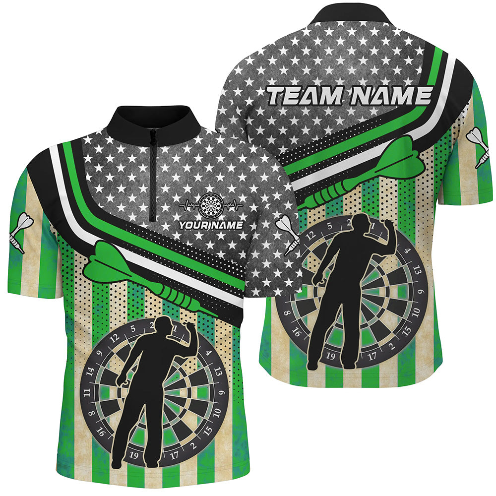 Personalized Green Retro American Flag Darts Shirts For Men Custom Patriotic Darts Player Jerseys TDM1993