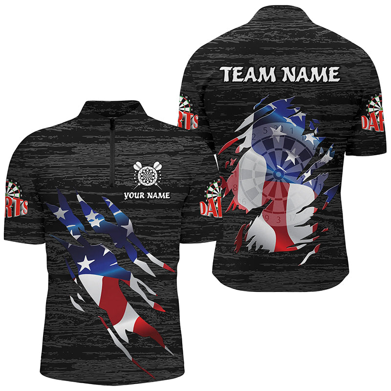 Personalized Black Grunge American Flag Darts Shirts For Men Custom Patriotic Darts Team Jerseys TDM2169