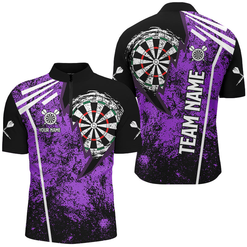 Personalized Grunge Men Darts Polo & Quarter Zip Shirts Custom Retro Darts Team Jerseys | Purple TDM2568
