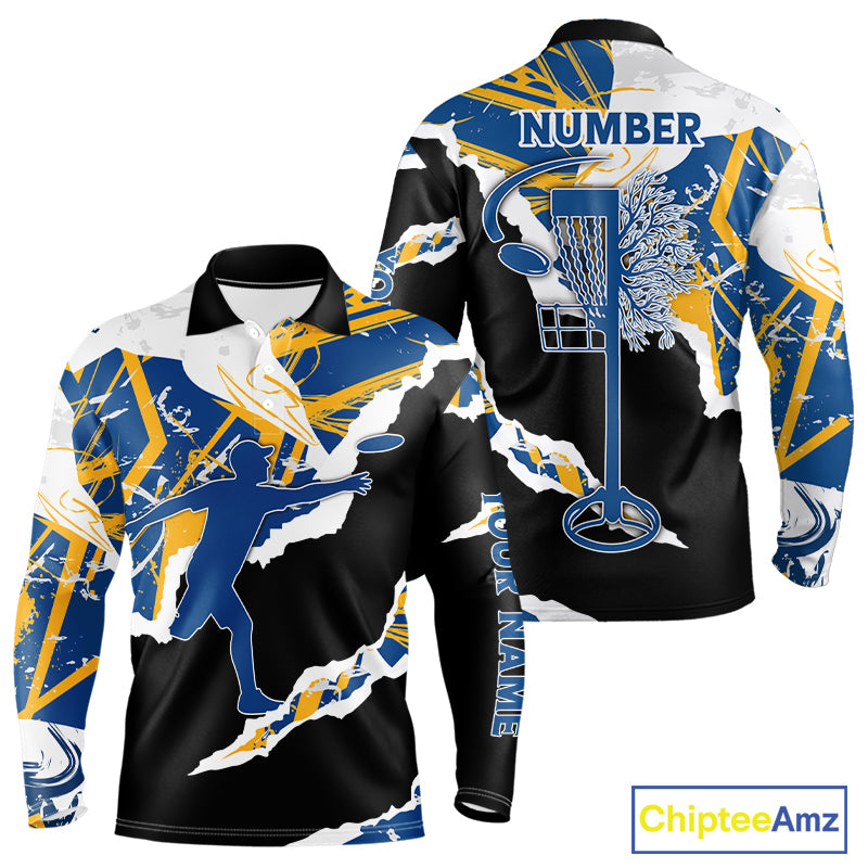 Mens Disc Golf Polo Shirt Custom Name Navy Blue Camo Disc Golf Basket Shirt Team Disc Golf Jersey NHN0014