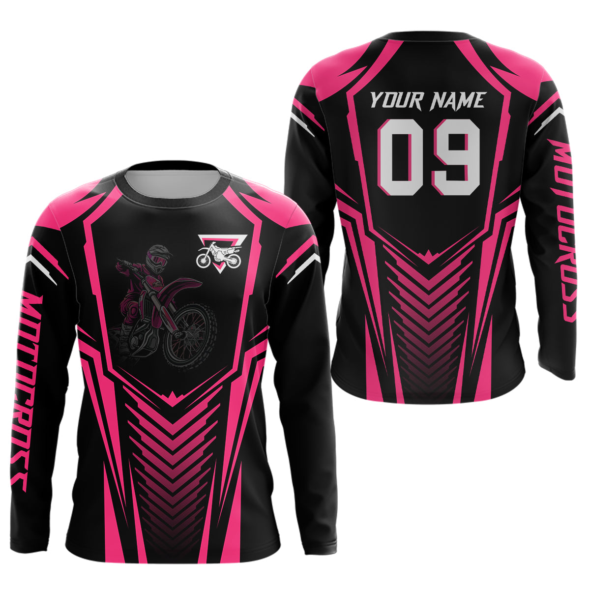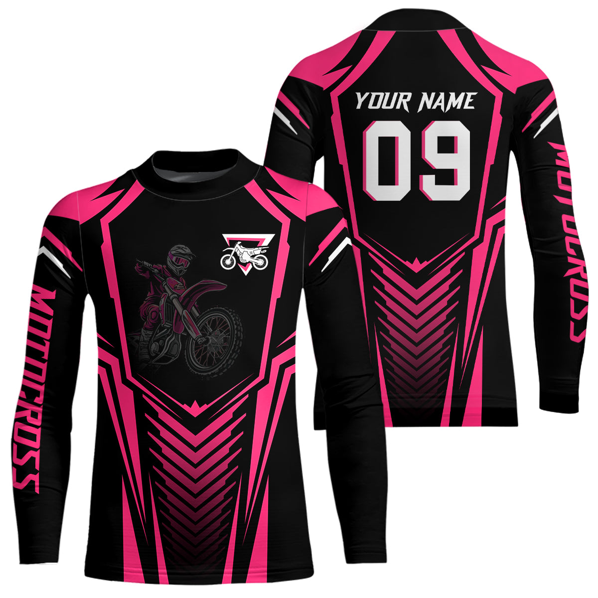 Adult&Kid Custom Motocross Jersey Pink UPF30+ MX Racing Biker Off-road Dirt Bike Racewear| CTP49