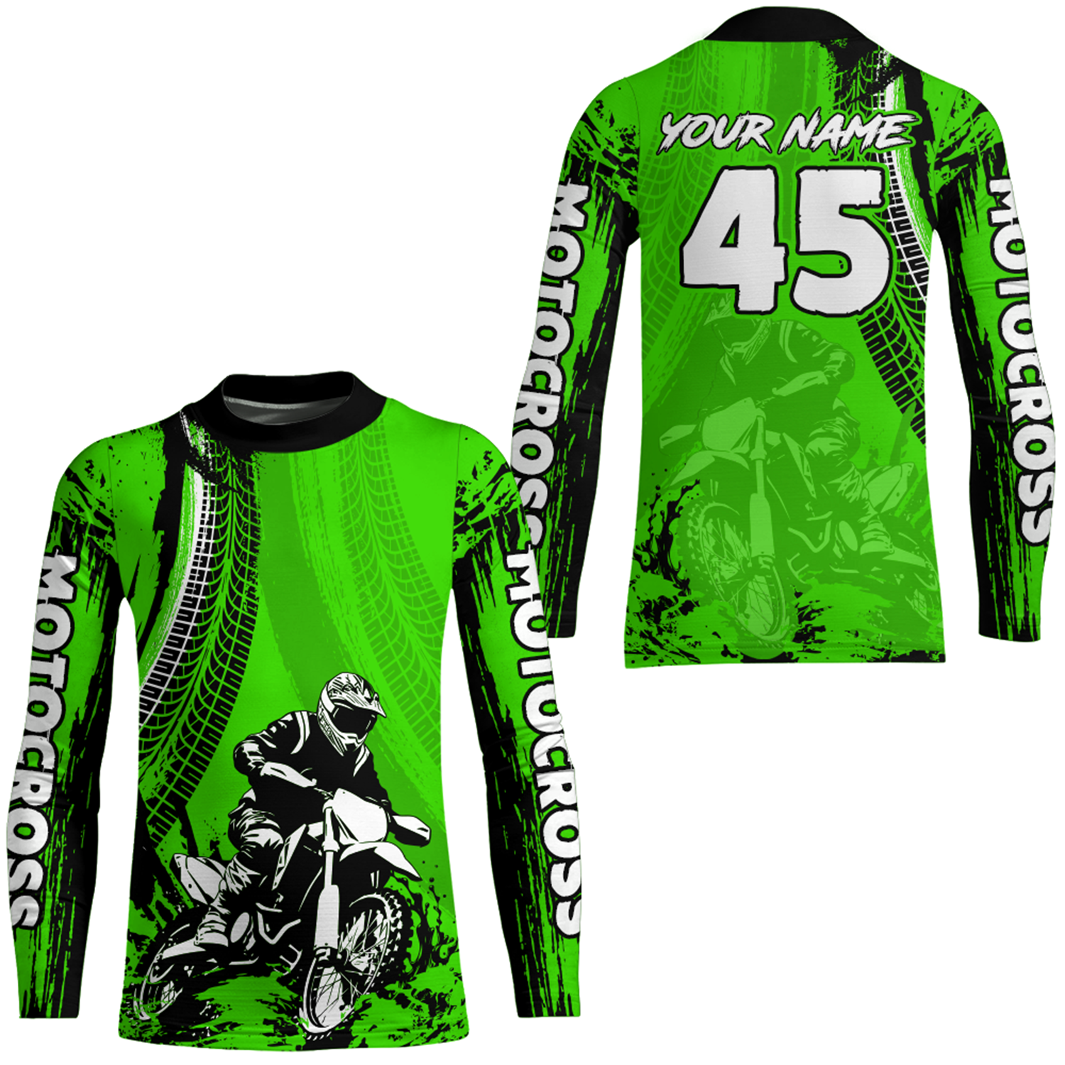 Adult&Kid Green Custom Motocross Jersey UPF30+ MX Racing Biker Off-road Dirt Bike Racewear| CTP65