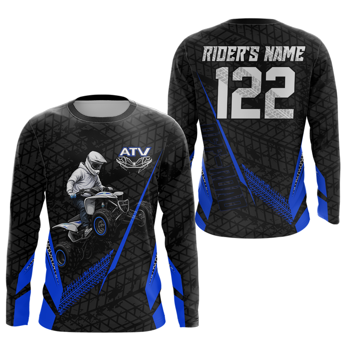 Personalized ATV Motocross Jersey For Adult & Kids UPF30+ Blue Quad Bike Shirt Off-Road ATV MX Racing NHN013