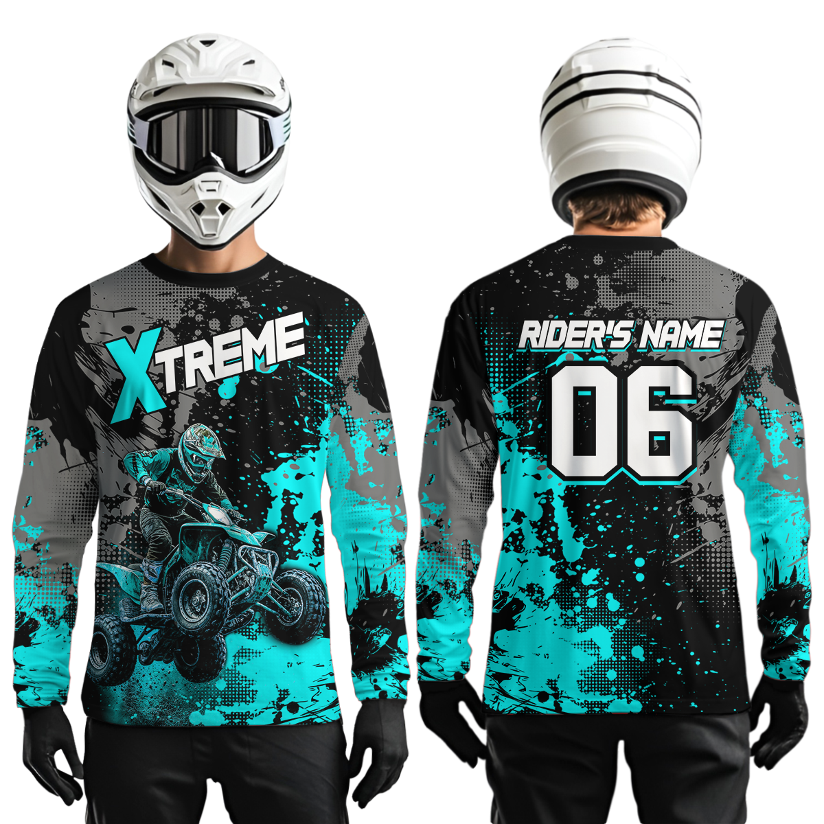 Custom Atv Motocross Shirt Turquoise UPF30+ Extreme Quad Bike Off-Road Jersey Men Kid Mx Riding Shirts NHN010