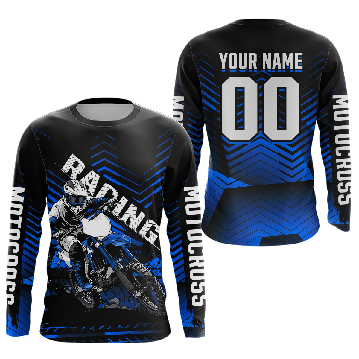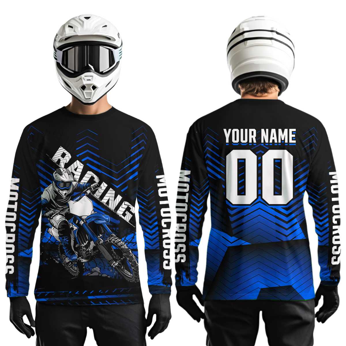 Custom Blue Motocross Jersey Racing for Kid Men Women MX Dirt Bike Shirts UPF30+ DNT46