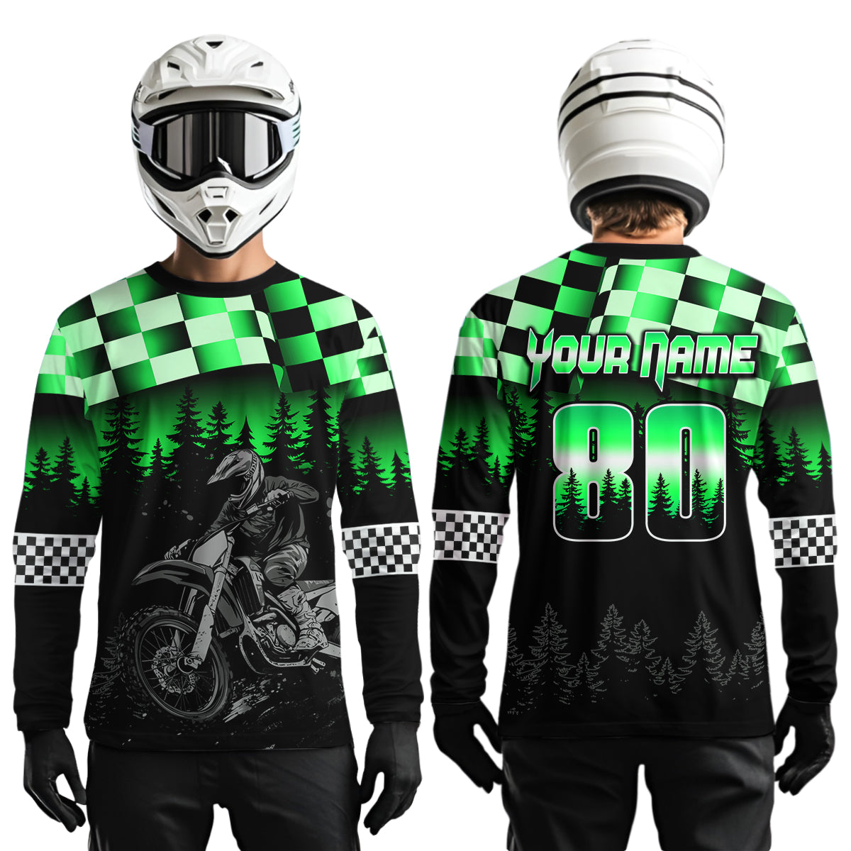 Green Motocross Jersey Dirt Bike Jersey Kid Adult UPF30+ Custom Motocross Racing Jersey DNT56