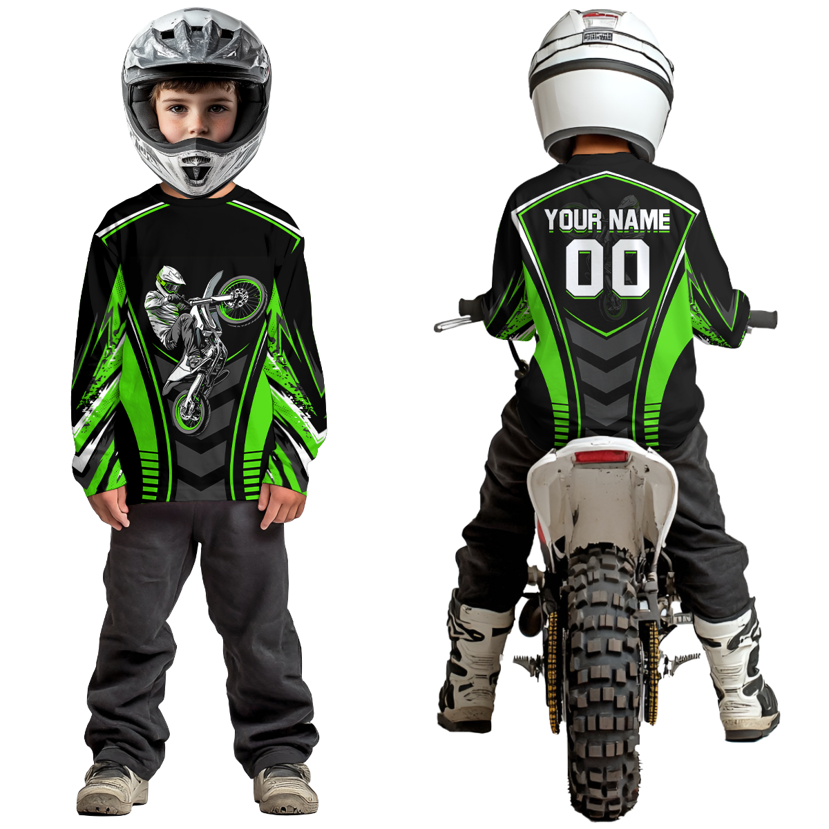 Green Youth Dirt Bike Jersey MX Off-Road Motocross Shirt Racing Shirt Kid Men Women DNT55
