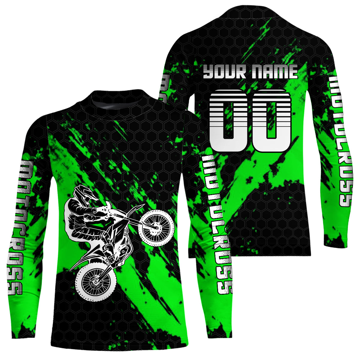 • PERSONALIZED MOTOCROSS JERSEY: This super cool long-sleeved shirt is exactly what all bikers are looking for. Add your name/number to make it a unique one that bears your own imprints.