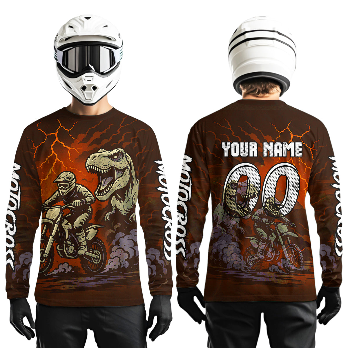 Orange Dinosaur Motocross Jersey Dirt Bike Shirts for Men Kid Women Racing Jersey XM414