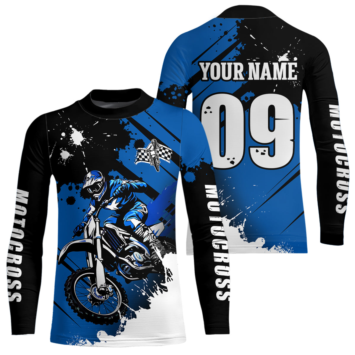 Personalized Blue Dirt Bike Jersey Motocross Jersey Men Women Kid Upf30+Youth Racing Jersey DNT76