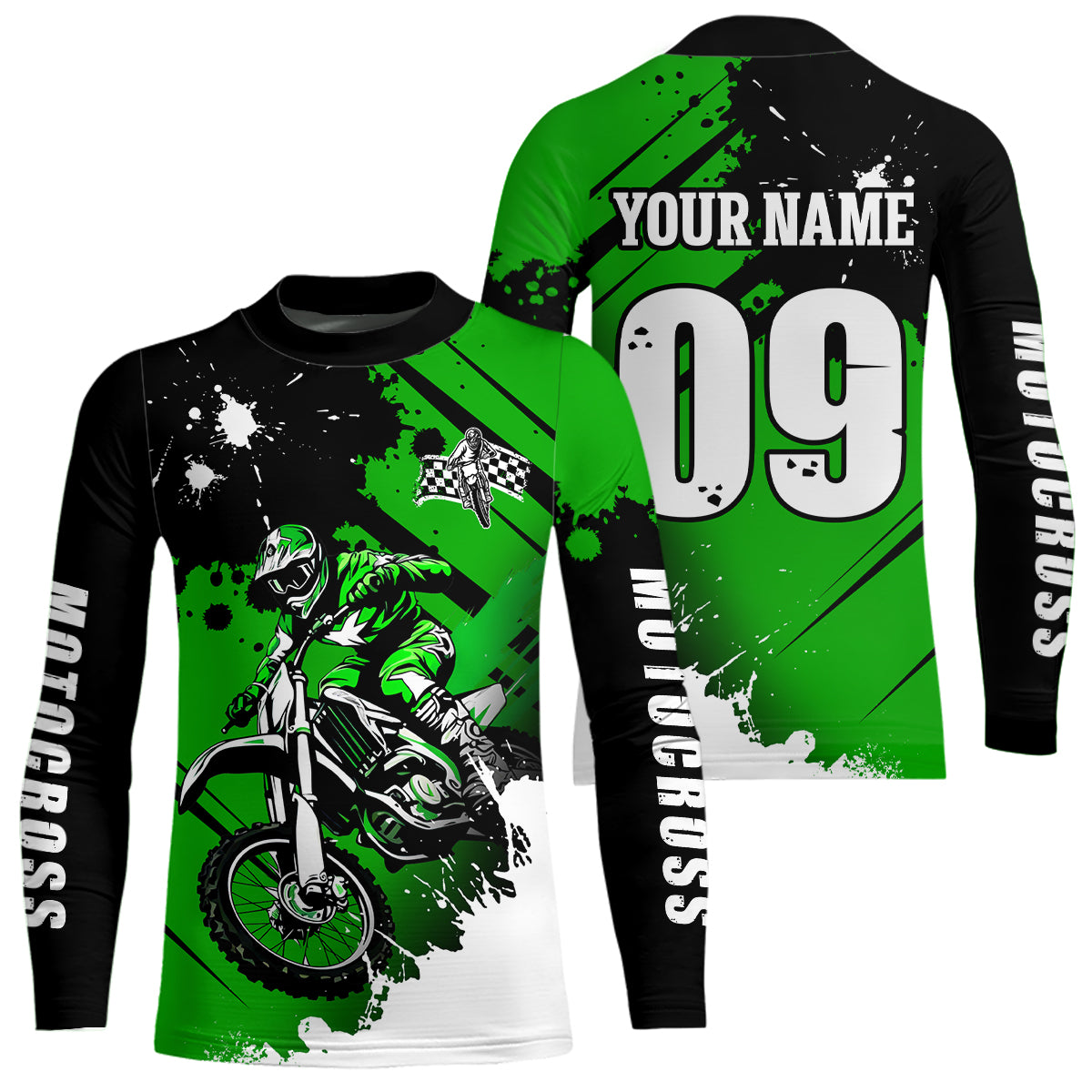 Personalized Green Dirt Bike Jersey Motocross Jersey Men Women Kid Upf30+Youth Racing Jersey DNT76