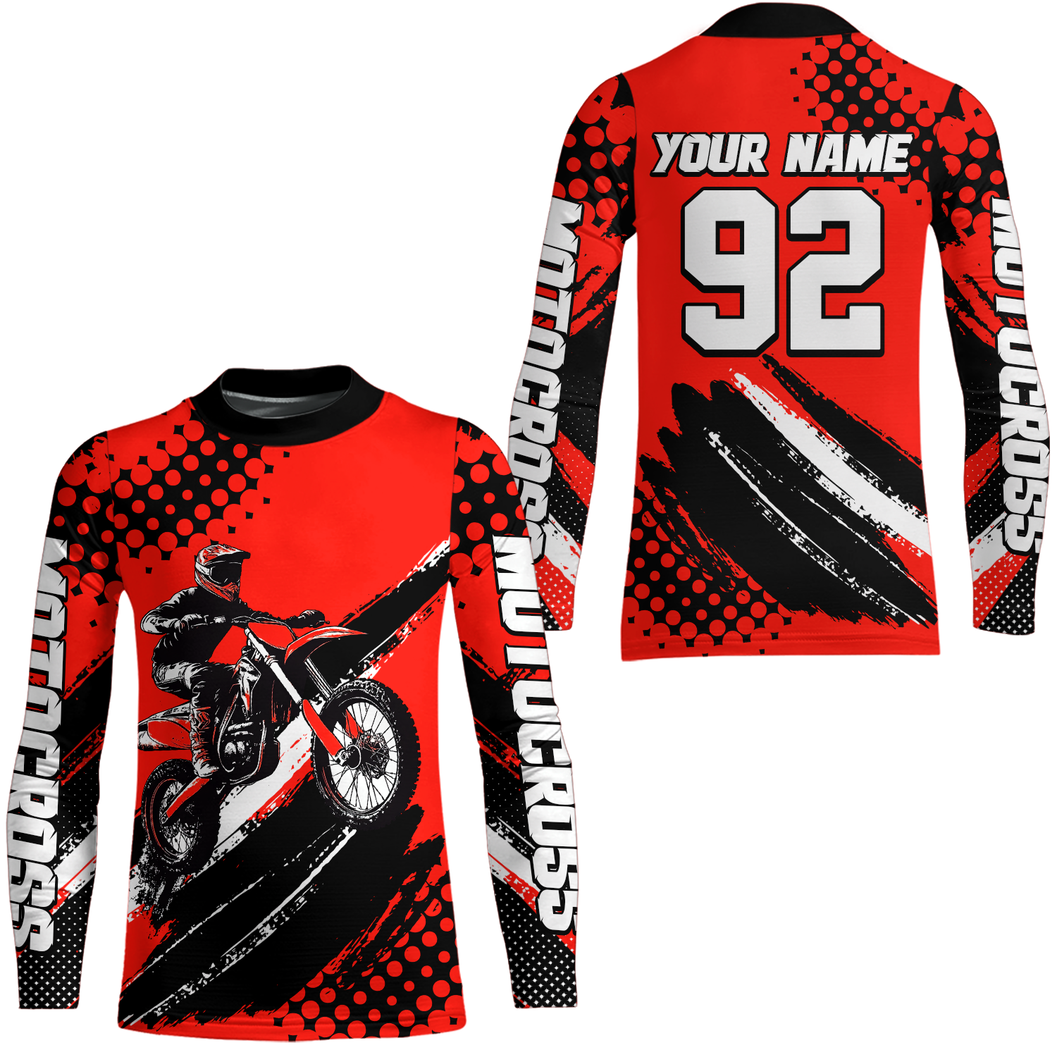 Personalized Red Racing Jersey Motocross for Men Women Kid Upf30+ Youth Off-Road Racing Jersey DNT02