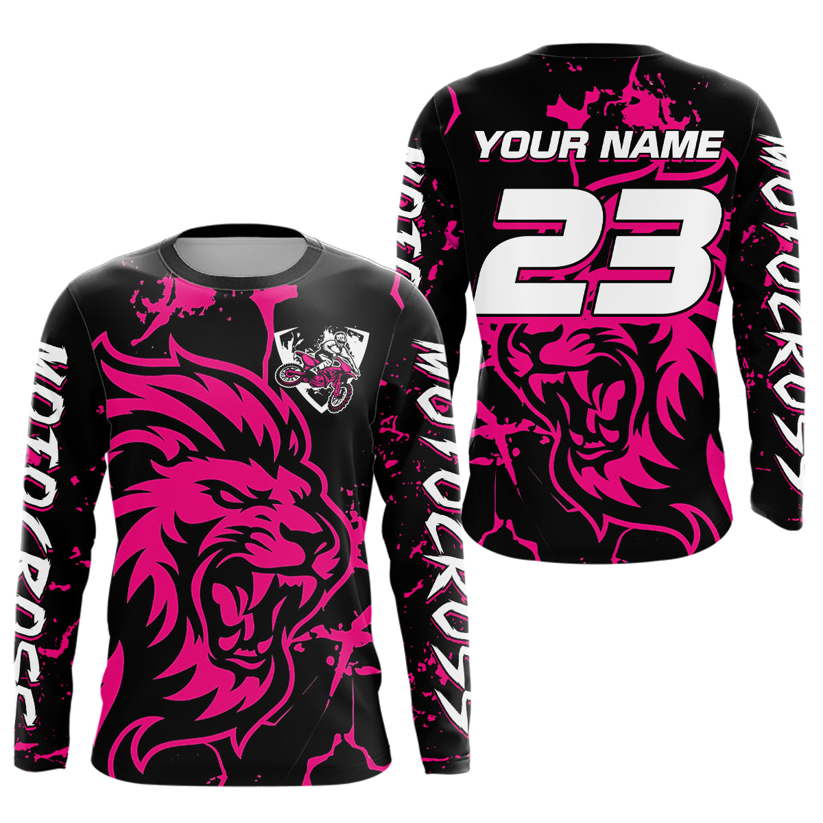 Pink Lion Custom Motocross Racing Jersey Kid Women Men Dirt Bike Shirts Riding Shirt XM422