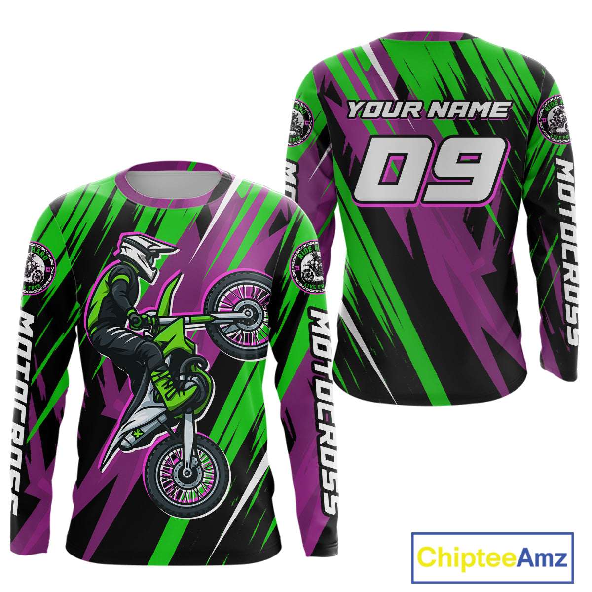 Purple and Green Motocross Racing Jersey for Women Kid Men Dirt Bike Off road Shirt XM473