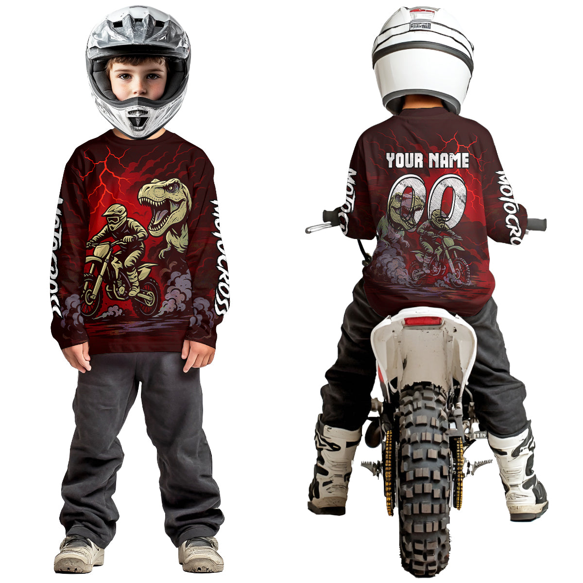 Red Dinosaur Motocross Jersey Dirt Bike Shirts for Men Kid Women Racing Jersey XM414