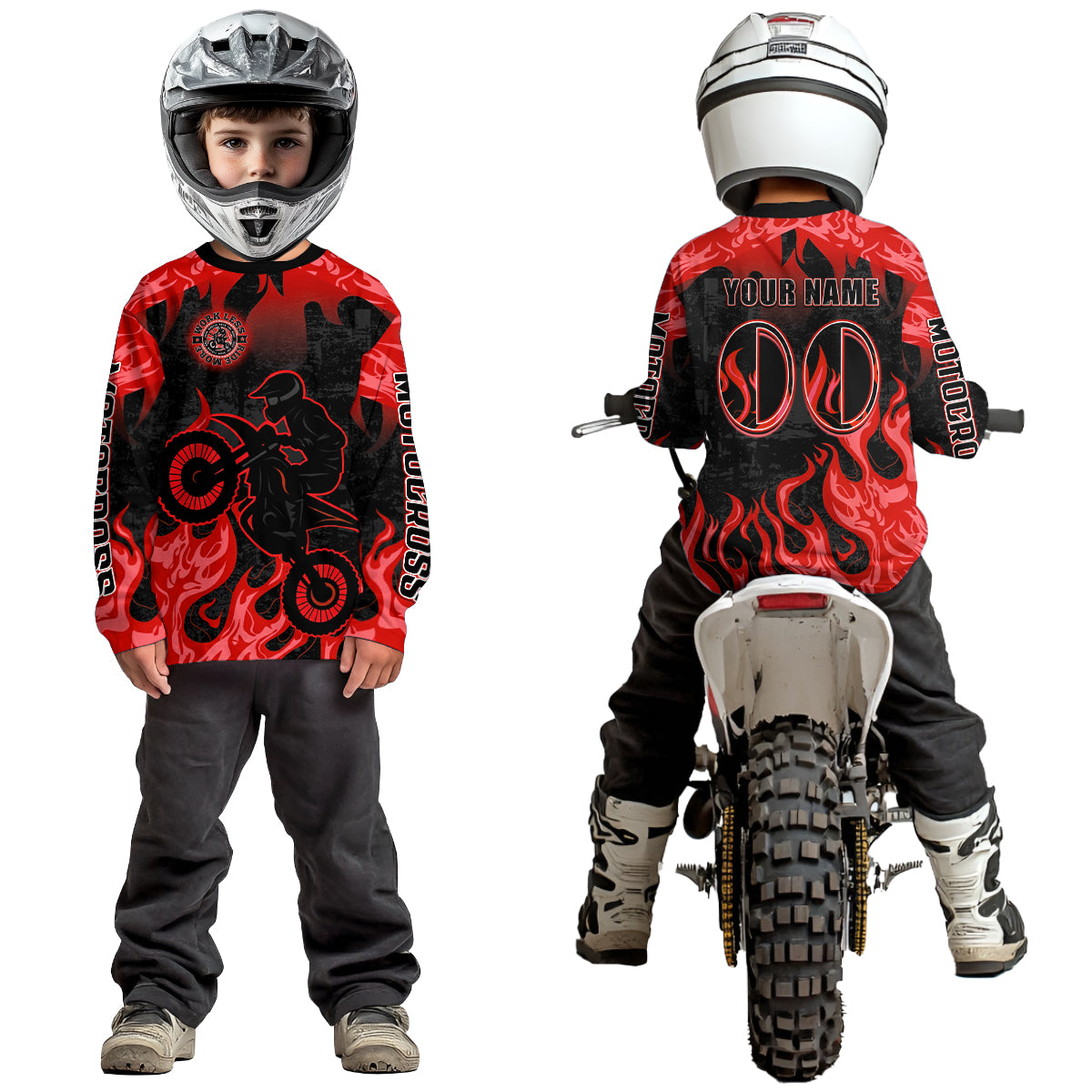 Red Flaming Motocross Racing Jersey Men Women Kid Dirt Bike Shirts Motorcycle Shirt XM447
