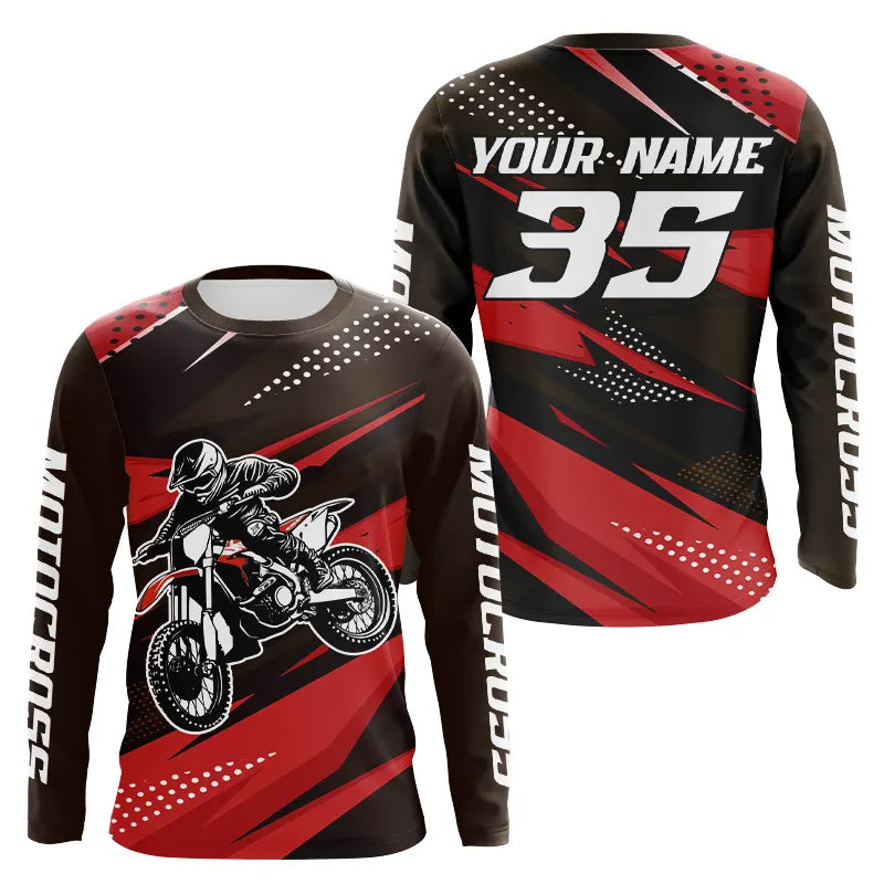 • PERSONALIZED MOTOCROSS JERSEY: This super cool long-sleeved shirt is exactly what all bikers are looking for. Add your name/number to make it a unique one that bears your own imprints.