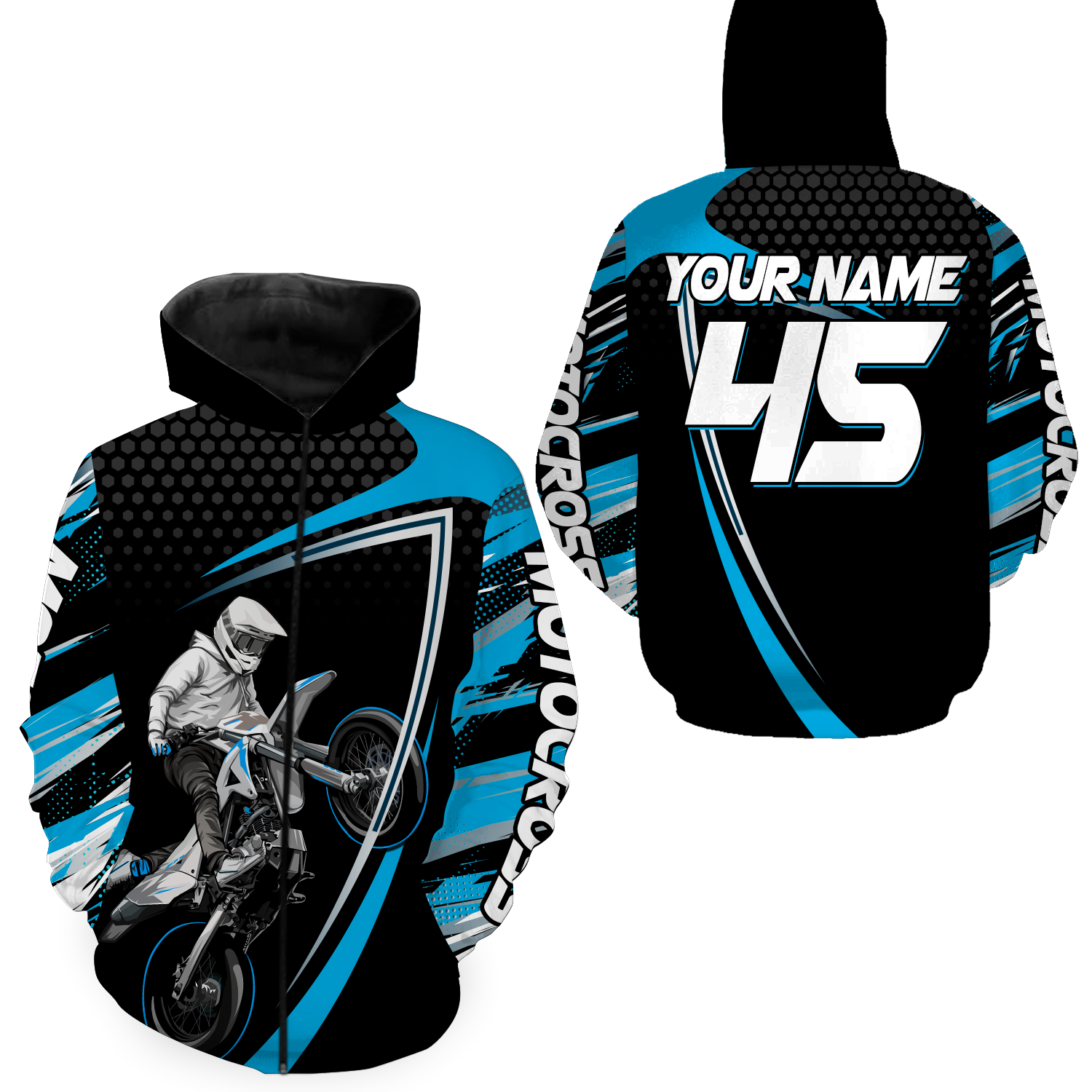 Light Blue Motocross Racing Hoodie Jersey For Men Women Motorcycle Dirt Bike Hoodie Zip MH124
