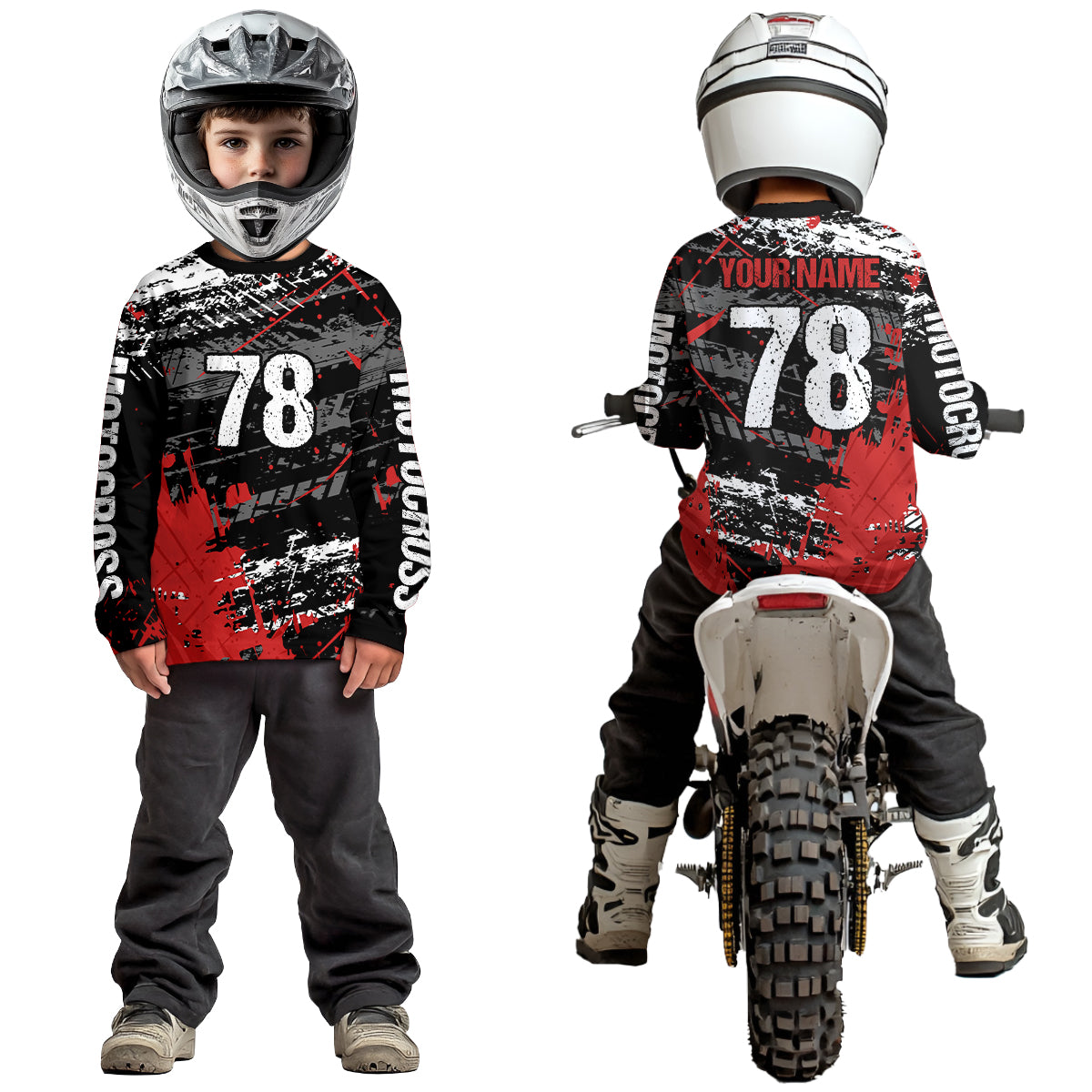 • PERSONALIZED MOTOCROSS JERSEY: This super cool long-sleeved shirt is exactly what all bikers are looking for. Add your name/number to make it a unique one that bears your own imprints.