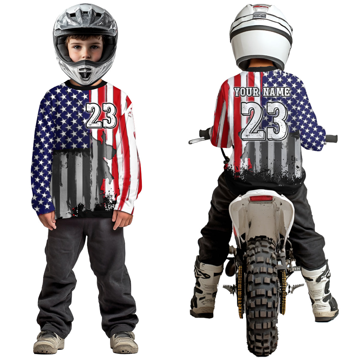 • PERSONALIZED MOTOCROSS JERSEY: This super cool long-sleeved shirt is exactly what all bikers are looking for. Add your name/number to make it a unique one that bears your own imprints.