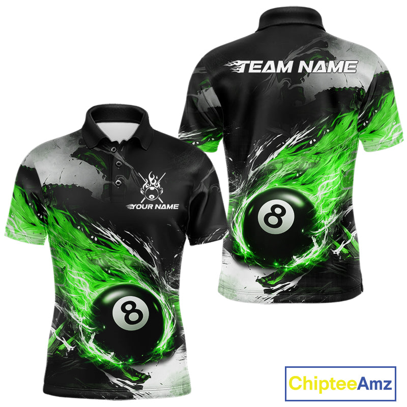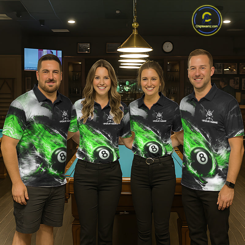 Custom Green Flaming 8 Ball Pool Billiard Shirt For Men, Billiard Team Jersey Polo & 1/4 Zip TDM6371