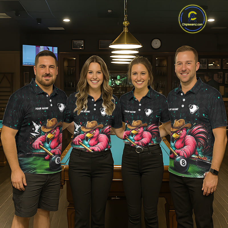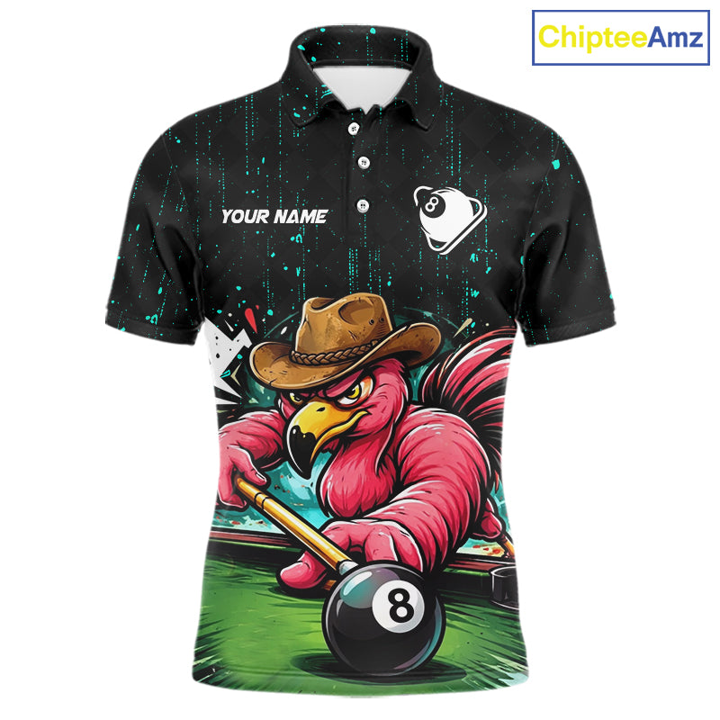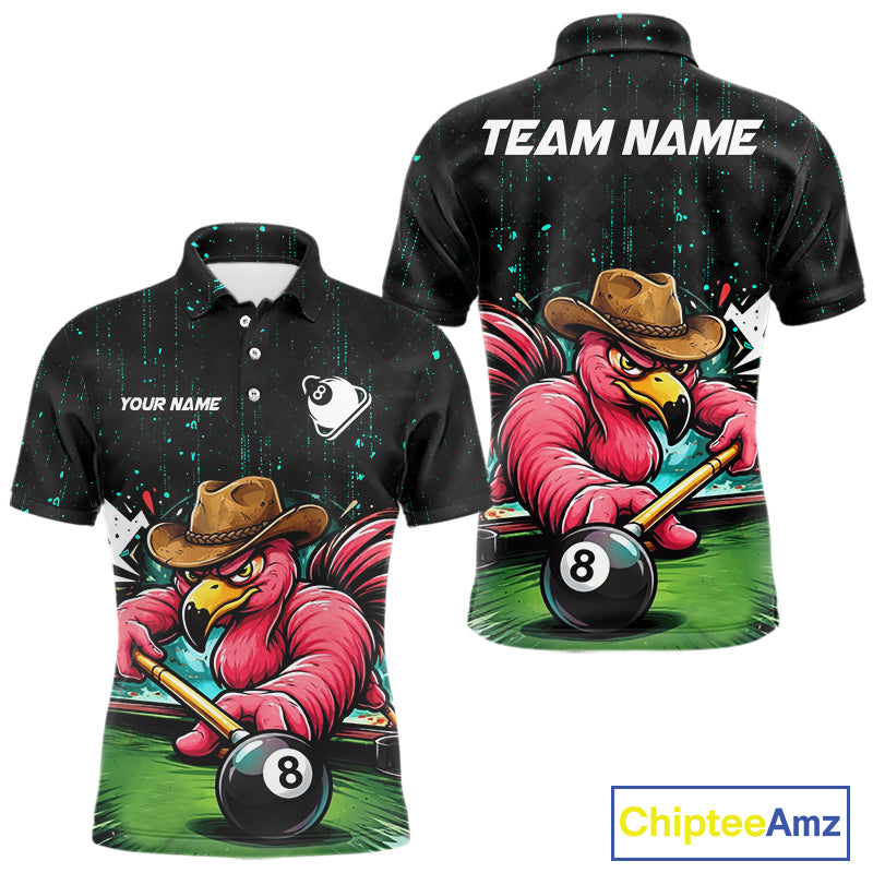 Funny Flamingo Play 8 Ball Pool Billiard Shirt For Men Custom Teal Splatter Billiard Pool Team Shirt NYN3093